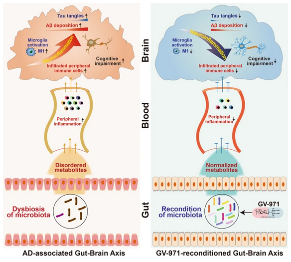 图4.GV-971通过重新调节肠道菌群减轻神经炎症。
