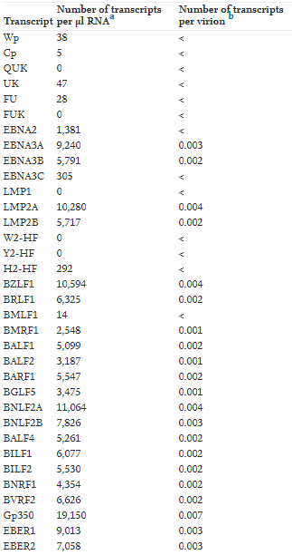 表1.在成熟感染性病毒体中检测到EBV mRNA