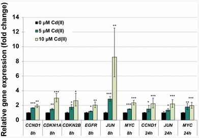 Use of high-throughput RT-qPCR to assess modulations of gene expression profiles related to genomic stability and interactions by cadmium