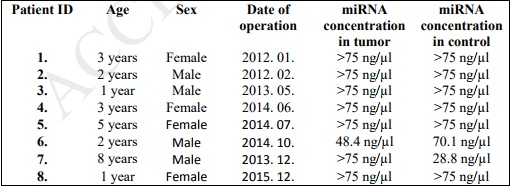 表1. 从手术样本中获得miRNA浓度的登记患者